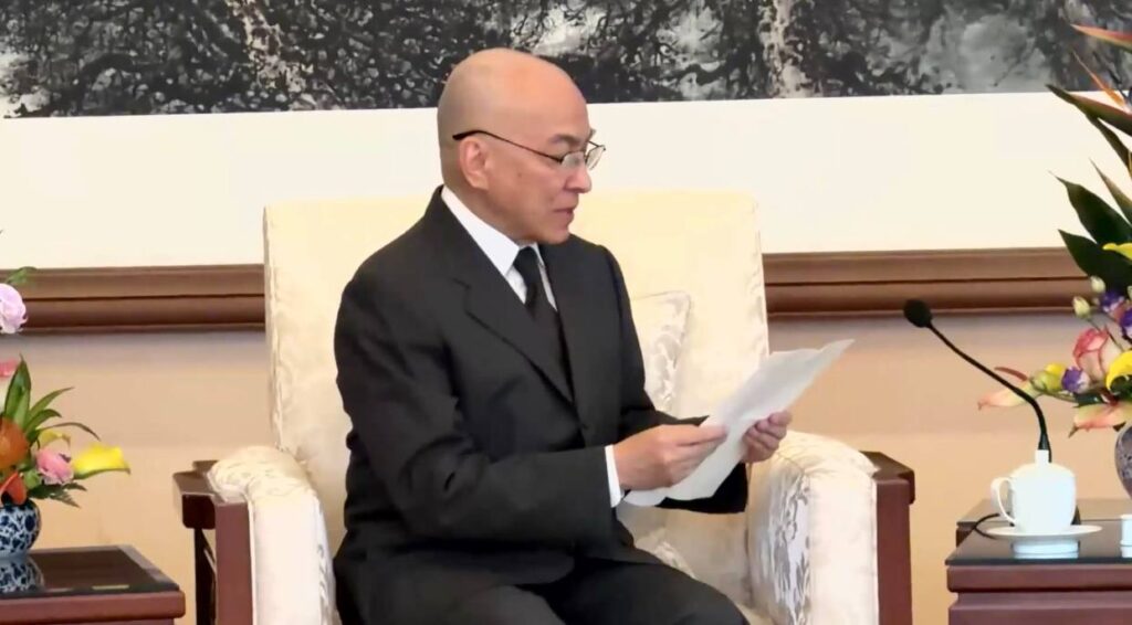 Phnom Penh: His Majesty King Norodom Sihamoni of Cambodia and Her Majesty the Queen Mother of the Khmer Nation graciously granted a royal audience with Mr. Cai Qi, a member of the Standing Committee of the Political Bureau of the Central Committee of the Communist Party of China, at the Diaoyutai State Guesthouse in Beijing on the morning of March 25, 2026.