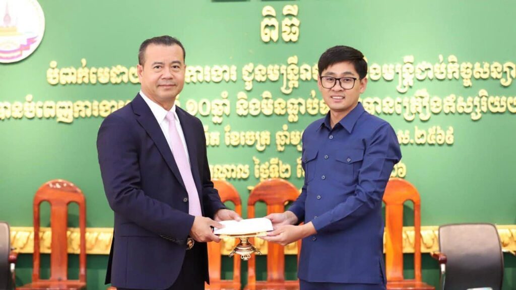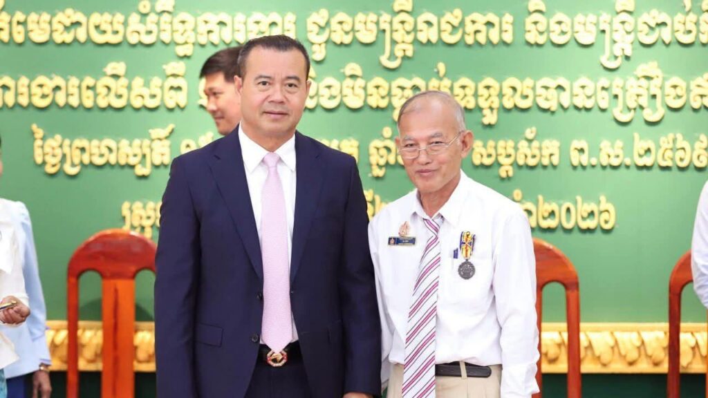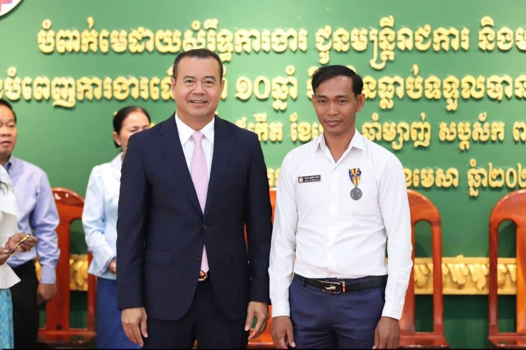 Kandal: Dr. Kao Thach, Government Delegate in charge as Director General of the Rural Development and Agriculture Bank and Deputy Head of the Government Working Group assisting the grassroots of Khsach Kandal district, on the morning of Thursday, April 2, 2026, presided over the ceremony to award service medals to 237 civil servants and contract officials of Khsach Kandal district administration.