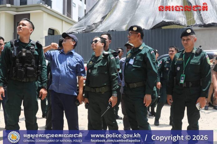 Banteay Meanchey: Following the strict orders of General Sar Thet, Commissioner-General of the National Police, and with the coordination of the Prosecutor’s Office of Banteay Meanchey Provincial Court, on April 22, 2026, Lieutenant General Hem Sovath, Deputy Commissioner-General of the National Police, led the National Police Force in cooperation with the Banteay Meanchey Provincial Police Force to launch an operation to crack down on a clandestine building that was committing online fraud crimes in O’Chrov Sangkat, Poipet City, Banteay Meanchey Province.