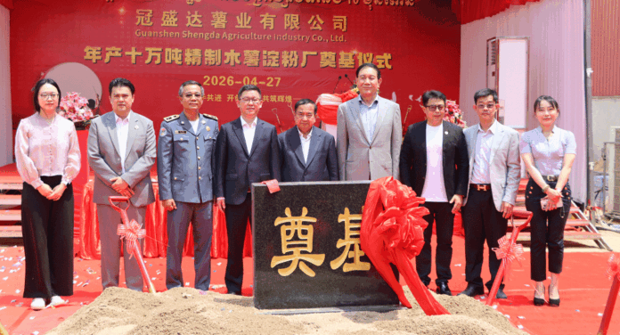 Kampong Speu: On the morning of April 27, 2026, the cassava flour factory of Guanshen Shengda Agriculture Industry Co., Ltd. opened a new construction site in Chek Village, O Commune, Phnom Sruoch District, Kampong Speu Province, between kilometers 74-75.