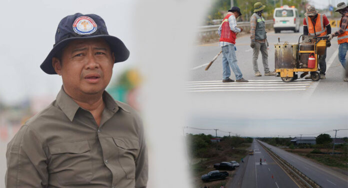 Battambang: On the afternoon of April 28, 2026, Mr. Puk Riththa, Director of the Department of Public Works and Transport of Battambang Province, visited to inspect the progress of work on the highway section, which is the most dangerous area.